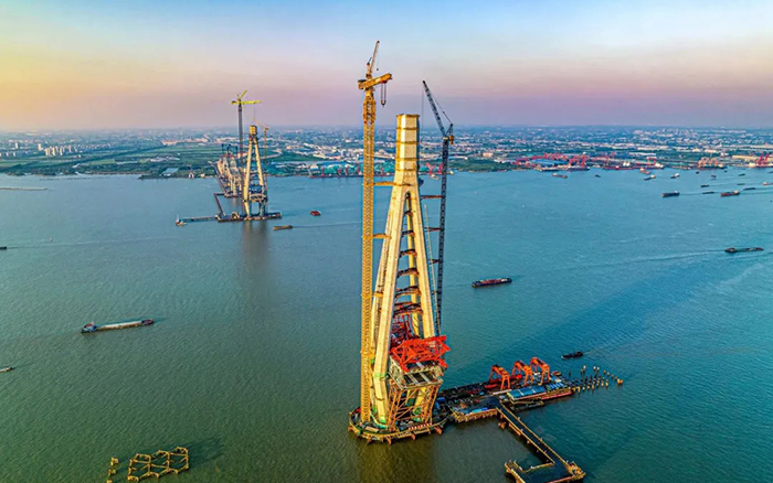常泰長江大橋集高速公路、城際鐵路、普通公路“三位一體”,是世界上最大跨度的斜拉橋,主塔設(shè)計總高350米,對服務(wù)“長江經(jīng)濟(jì)帶”建設(shè)、長三角一體化發(fā)展等國家重大戰(zhàn)略具有重要意義。