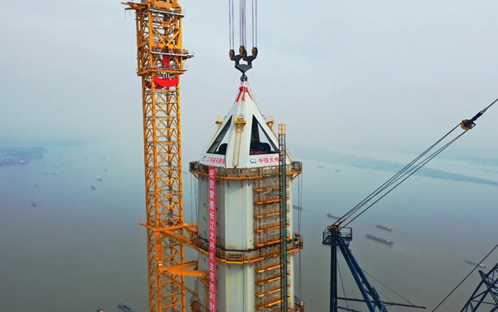 隨著最后一個節(jié)段穩(wěn)穩(wěn)落至上塔柱指定位置
