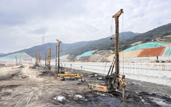項(xiàng)目場地屬軟土地基且臨近地鐵5號(hào)線前海公園站,緊貼車站C出口主體結(jié)構(gòu),施工難度大。現(xiàn)場使用徐工旋挖設(shè)備11臺(tái),自進(jìn)場以來,旋挖鉆機(jī)群相當(dāng)“給力”,保證項(xiàng)目按照施工節(jié)點(diǎn)順利推進(jìn)。