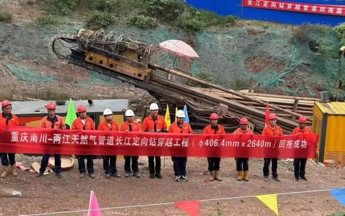 工程橫跨長江,施工路段地表層由粉質(zhì)粘土覆蓋,下層土質(zhì)為泥巖砂巖互層,地質(zhì)復雜。定向鉆穿越段采用D406.4×10.0 L415M直縫埋弧焊鋼管,穿越長度為2640米,深度達143米,穿越管道與長江底部最小間距為84.66米。施工設(shè)備的作業(yè)能力、工作效率都面臨非常大的考驗。