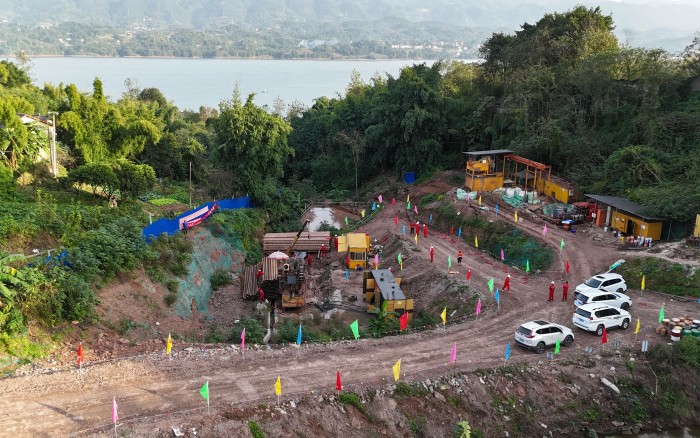 此外,徐工XZ6600三油缸夾持虎鉗,卸扣扭矩大,虎鉗可全程浮動,方便套管法施工工藝。徐工技術(shù)人員結(jié)合設(shè)備特點與現(xiàn)場情況,實現(xiàn)XZ6600與XZ3600雙機對穿,采用雙鉆機擴孔施工工藝,為項目成功完成按下“加速鍵” 。