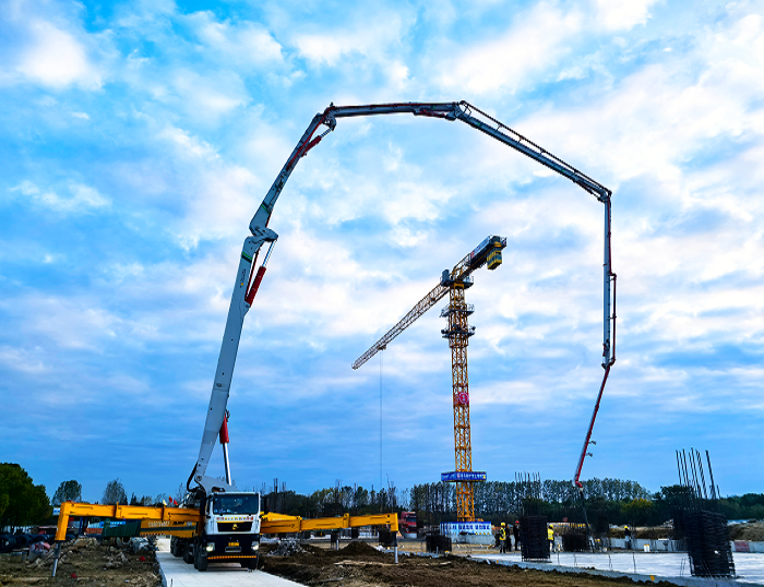 該設(shè)備依托71.1米超長臂架,實(shí)現(xiàn)廣域覆蓋與厘米級(jí)精準(zhǔn)布料,180m3/h的輸送能力保障大方量澆筑需求。