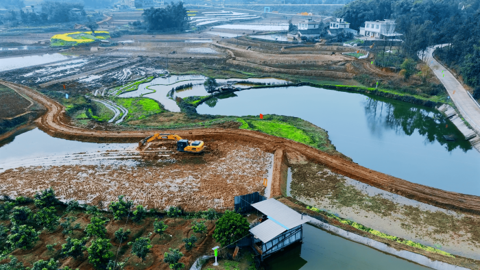 繼續(xù)向東,這里是萬(wàn)里長(zhǎng)江第一城——宜賓,在宜賓江安縣陽(yáng)春鎮(zhèn),5000畝高標(biāo)準(zhǔn)農(nóng)田建設(shè)進(jìn)入尾聲,項(xiàng)目高峰期投入30余臺(tái)徐工挖掘機(jī)。