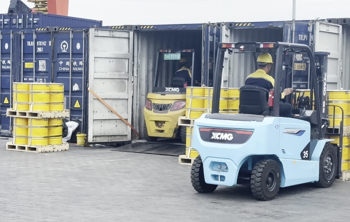 車與孔雀系列高壓鋰電重載叉車穿梭其間,以強(qiáng)勁性能與默契配合,為鐵路運(yùn)輸高效穩(wěn)定運(yùn)轉(zhuǎn)筑起堅(jiān)實(shí)保障,盡顯徐工裝備的硬核實(shí)力。
