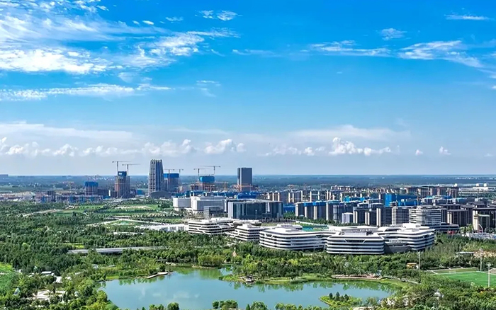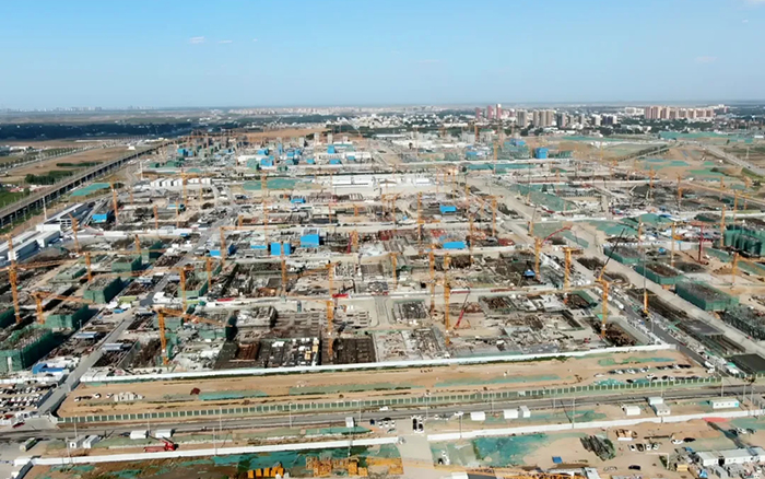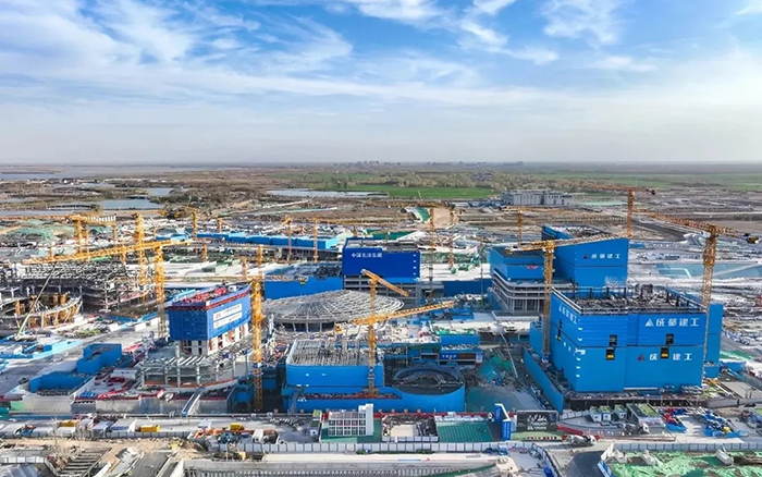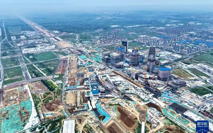 在雄安新區(qū)啟動區(qū)金融島核心地帶,XGT7022等十余臺徐工塔吊如同鋼鐵巨人般矗立在建設現(xiàn)場,與明珠湖對岸的國貿中心建筑群遙相呼應,它們正以毫米級精度吊裝著總重量超萬噸的鋼結構模塊。