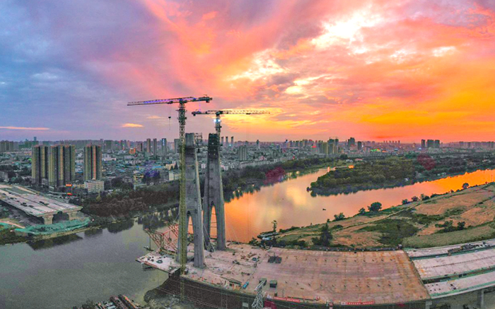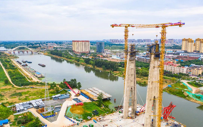 此次參建的項目是阜裕大橋項目,主要承接橋梁主塔的吊裝任務(wù)。阜裕大橋全長1735米,橋梁長1127米,主橋采用獨塔斜拉橋結(jié)構(gòu),主塔高95.6米,主橋斷面為60米超寬幅鋼箱梁,是國內(nèi)市政最寬鋼箱梁橋,建成后將成為阜陽的又一個“新地標”。