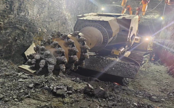 徐工XTR7/360掘進(jìn)機(jī)在礦下展開了一場硬碰硬的較量,平均兩小時(shí)進(jìn)尺1m的施工效率,引來現(xiàn)場采礦工作人員的圍觀。