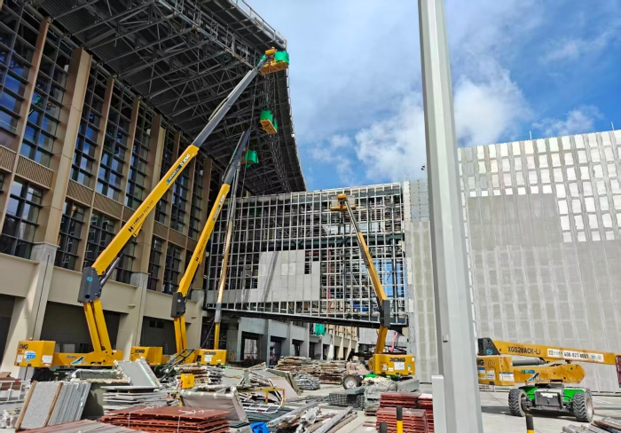 在三亞鳳凰機場T3航站樓這一重大基礎(chǔ)設(shè)施建設(shè)現(xiàn)場,由三臺XGS34ACK-Li與兩臺XGS28ACK-Li組成的鋰電高空作業(yè)編隊創(chuàng)造了令人矚目的施工效率。面對航站樓內(nèi)部復(fù)雜的施工環(huán)境,展現(xiàn)出了卓越的協(xié)同作戰(zhàn)能力。