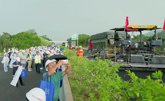 近日,在廣西梧州舉辦的“第八屆平安百年品質(zhì)工程交流會(huì)”上,蒼容高速展示了瀝青路面無(wú)人化智能攤鋪碾壓集群施工技術(shù)。這是廣西公路建設(shè)首次應(yīng)用這一先進(jìn)技術(shù),標(biāo)志著當(dāng)?shù)毓肥┕は蛑悄芑?、無(wú)人化方向邁出了重要一步。