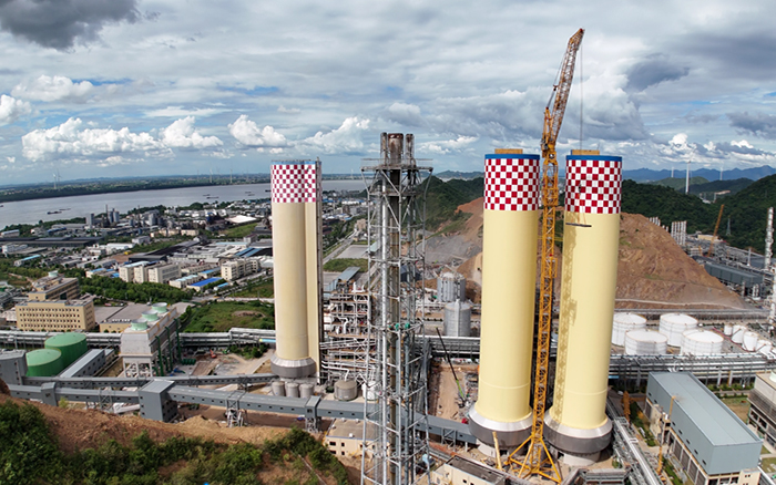 作業(yè)過程中,徐工 XGL3300-220S先將圓形橫梁鋼構(gòu)提升至130多米高度,越過塔筒,在塔頂區(qū)域通過多次微幅旋轉(zhuǎn)調(diào)整,最終穩(wěn)穩(wěn)下沉,與造粒塔上部預(yù)埋支座精準(zhǔn)對(duì)接。