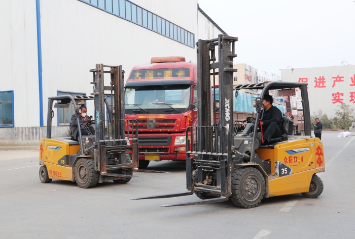 在山東菏澤某大型板材廠內(nèi),二十余臺徐工鯤鵬叉車、新E叉車組成的"黃金戰(zhàn)隊",以高效穩(wěn)定的作業(yè)表