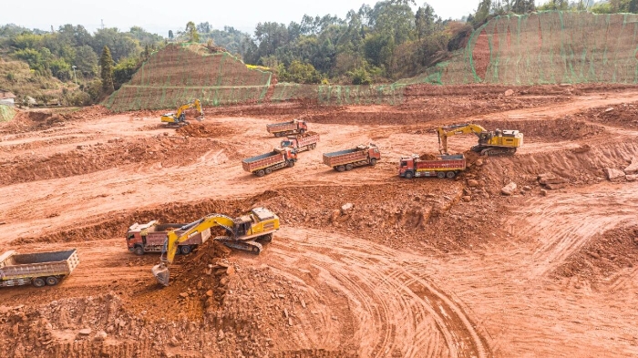 四川樂山,一座關(guān)乎區(qū)域經(jīng)濟發(fā)展的重點工業(yè)園區(qū)正拔地而起。施工現(xiàn)場,機械的轟鳴聲奏響著發(fā)展的號角,運輸車輛如織般往來穿梭,一派生機勃勃的建設圖景在此鋪展。在這幅宏大的畫卷中央,十余臺身披“徐工金”的60噸級大型挖掘機尤為醒目,它們以其沉穩(wěn)有力的臂膀,成為推進項目進程當之無愧的“主力軍”。
