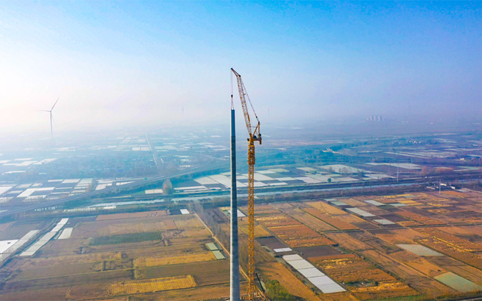 在山東魚(yú)臺(tái)風(fēng)電項(xiàng)目建設(shè)現(xiàn)場(chǎng)